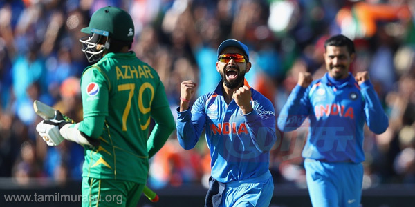 பர்மிங்ஹாம்: சாம்பியன்ஸ் டிராபி தொடரில், பர்மிங்ஹாமில் நேற்று நடந்த 4வது லீக் போட்டியில், பரம எதிரியான பாகிஸ்தானை, டக்வொர்த் லீவிஸ் விதிப்படி, 124 ரன்கள் வித்தியாசத்தில் இந்தியா வீழ்த்தியது. முதலில் பேட் செய்த இந்தியா நிர்ணயிக்கப்பட்ட 48 ஓவர்கள் முடிவில் (2 முறை மழை பெய்ததால் 2 ஓவர்கள் குறைக்கப்பட்டது) 3 விக்கெட் இழப்பிற்கு 319 ரன்கள் குவித்தது. ரோகித் சர்மா 91, கேப்டன் கோஹ்லி 81 (68 பந்து, 6 பவுண்டரி, 3 சிக்சர்), ஷிகார் தவான் 68, யுவராஜ் சிங் 53 (32 பந்து, 8 பவுண்டரி, 1 சிக்சர்), ஹர்திக் பாண்டியா 20 ரன்கள் (6 பந்து, 3 சிக்சர்) எடுத்தனர். பின்னர் டக்வொர்த் லீவிஸ் விதிப்படி 48 ஓவர்களில் 324 ரன்கள் எடுத்தால் வெற்றி என்ற இலக்குடன் பேட் செய்த பாகிஸ்தான் 4.5 ஓவர்களில் விக்கெட் இழப்பின்றி 22 ரன்கள் எடுத்திருந்தபோது மழை குறுக்கிட்டது.