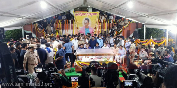 அதை தொடர்ந்து இன்று மாலை புனித் ராஜ்குமார் உடல், பெங்களூரு கண்டீரவா ஸ்டுடியோ வளாகத்தில் உள்ள அவரது பெற்றோர் சமாதி அருகில் முழு அரசு மரியாதையுடன் நல்லடக்கம் செய்யப்படுகிறது. அதற்கான ஏற்பாடுகள் நடந்து வருகிறது. புனித் ராஜ்குமார் உடலுக்கு கன்னட திரையுலகினர் மட்டுமில்லமால் தமிழ், தெலுங்கு, மலையாளம் திரையுலகினரும் நேரில் வந்து அஞ்சலி செலுத்தி வருகிறார்கள்.