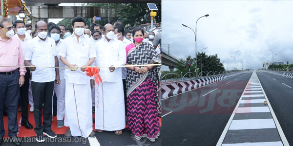 இதையடுத்து, கோயம்பேடு மற்றும் வேளச்சேரி மேம்பால பணிகள் விரைவாக நடைபெற்று, கடந்த வாரம் முடிவடைந்து பொதுமக்கள் போக்குவரத்துக்கு தயார் நிலையில் வைக்கப்பட்டிருந்தது. கோயம்பேடு மேம்பாலத்தை முதல்வர் மு.க.ஸ்டாலின் இன்று காலை 10.35 மணிக்கு பொதுமக்கள் பயன்பாட்டிற்காக ரிப்பன் வெட்டி தொடங்கி வைத்தார். பின்னர், புதிய மேம்பாலத்தில் முதல்வர் மற்றும் அமைச்சர்கள், அதிகாரிகள் கார் மூலம் பயணம் செய்தனர். இந்த மேம்பாலம் ரூ.93 கோடி செலவில் ஒரு கிலோ மீட்டர் நீளத்துக்கு கட்டப்பட்டுள்ளது.