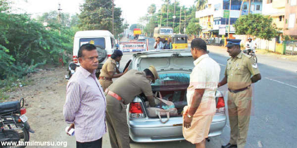 திருச்சி உள்பட தமிழகம் முழுவதும் வாகனத் தணிக்கை தீவிரப்படுத்தப்பட்டுள்ளது. திருச்சி சமயபுரம் டோல்கேட்டில் நேற்று இரவு தேர்தல் அதிகாரிகள் வாகன தணிக்கையில் ஈடுபட்டிருந்தனர். அப்போது சென்னையில் இருந்து திருச்சி வந்த காரில் ரூ.1.5 லட்சம் வைத்திருந்தனர். அவற்றை தேர்தல் அதிகாரிகள் பறிமுதல் செய்தனர். விசாரணையில் காரில் வந்தவர்கள் வியாபாரிகள் என்றும் அவர்கள் பொருட்கள் கொள்முதல் செய்ய பணம் கொண்டு வந்ததால் அந்த பணத்தை அவர்களிடம் திரும்ப ஒப்படைத்து விட்டனர்.