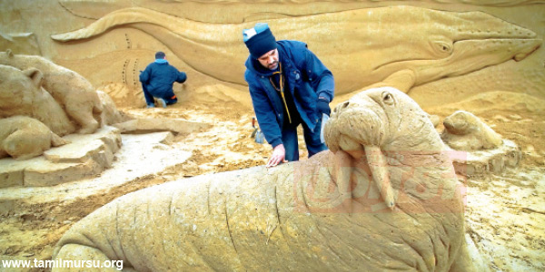 முக்கிய நிகழ்வுகளை பிரதிபலிக்கும் வகையிலும், விழிப்புணர்வு ஏற்படுத்தும் நோக்கத்துடனும் மணலில் சிற்பத்தை உருவாக்குவது வழக்கம். இதற்கு உலகம் முழுவதும் நல்ல வரவேற்பு உள்ளது. ஜெர்மனியில் உள்ள ருஜென் கடற்கரையில் மணல் சிற்ப கண்காட்சி நடைபெற்று வருகிறது. பல்வேறு நாடுகளை சேர்ந்த 50க்கும் மேற்பட்ட சிற்ப கலைஞர்கள் பங்கேற்று தங்களது திறமைகளை வெளிப்படுத்தினர். கடல்வாழ் உயிரினங்கள் பாதுகாப்பை வலியுறுத்தி கோரைப்பல் உள்ள கடல் குதிரை, பல்வேறு வகையான மீன்கள் உள்ளிட்டவை வடிவமைக்கப்பட்டன. இது பார்வையாளர்களை வெகுவாக கவர்ந்தது.