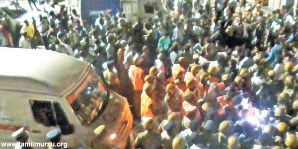 கோவை அரசு மருத்துவமனையில் பிரேத பரிசோதனை செய்த பின்னர் சங்கரின் உடல் போலீஸ் பாதுகாப்புடன் சொந்த ஊரான குமரலிங்கம் கொண்டு செல்லப்பட்டது. இரவு 8.30 மணி அளவில் மயானத்திற்கு உடலை கொண்டு சென்றனர். அப்போது அங்கு குவிந்த சங்கரின் உறவினர்கள், ‘’ சடலத்தை வீட்டிற்கு கொண்டு சென்ற பின்னர் தான் மயானத்திற்கு கொண்டு வர வேண்டும்’ என்றனர்.இதனால் போலீசாருக்கும் மக்களுக்கும் இடையே வாக்குவாதம் ஏற்பட்டது. ஆத்திரமடைந்த மக்கள், மயானத்தில் இருந்த விளக்குகளை உடைத்து நொறுக்கினர். இதையடுத்து போலீசார் சடலத்தை வீட்டுக்கு கொண்டு சென்றனர். திடீரென பழனி ரோட்டில் 100 பெண்கள் உள்பட 300 பேர் மறியலில் ஈடுபட்டனர்.