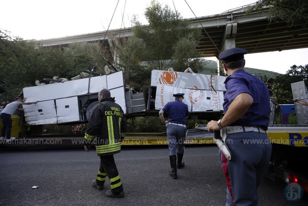 இத்தாலியில் நள்ளிரவில் விபத்து : பஸ் நொறுங்கியதில் 37 பேர் பலி